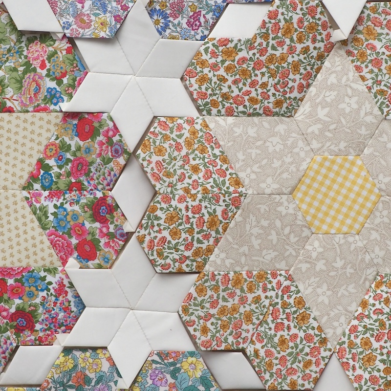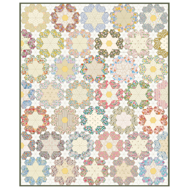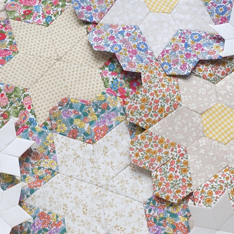 Designed by Jessie, Blooming Blossoms v2. quilt is created entirely in the English Paper Piecing technique. A club we offered in 2018 is back - with a twist! Blocks are larger and we have reversed the fabrics between the dark and light areas to create a whole new look! The quilt diagram gives a correct representation of the colour palette we are following and I have chosen some divine new Liberty Fabrics for the club. The quilting cotton shirtings allow the florals to really shine and coordinating AGF Solids work wonderfully alongside our Liberty Tana Lawns and Picadilly Poplins, and quilting cottons.