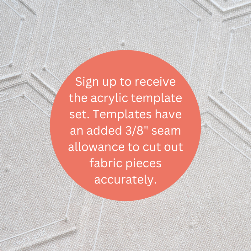 We offer a matching set of shapes we use in the quilt made of acrylic, these have a 3/8" seam allowance added which allows you to accurately cut your fabrics either by drawing around and cutting out with scissors or a rotary cutter. These are not necessary to complete the club, as we also provide sub-cutting instructions for every fabric sent to you in each kit, however they are popular with our customers. Please select the option from our drop down menu below. The 6-piece acrylic fabric cutting template set will be charged in your first payment and included in your first month’s box, RRP price of over £28.75, with a special 20% off for club members priced at £25.88 (International £21.57).