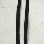 Black polypropylene and latex mix braided elastic for sewing. 1/4" (5mm) wide.