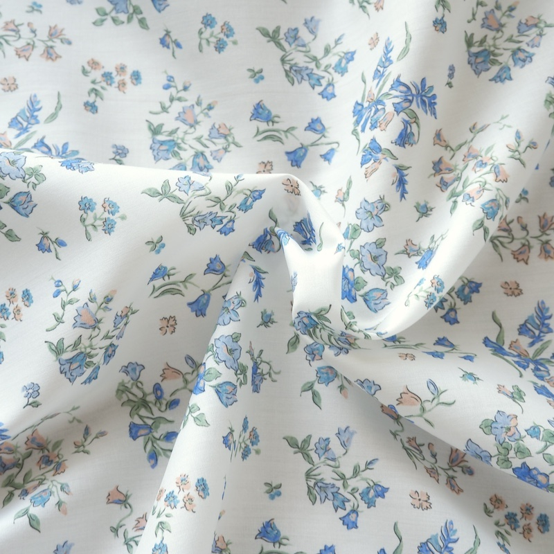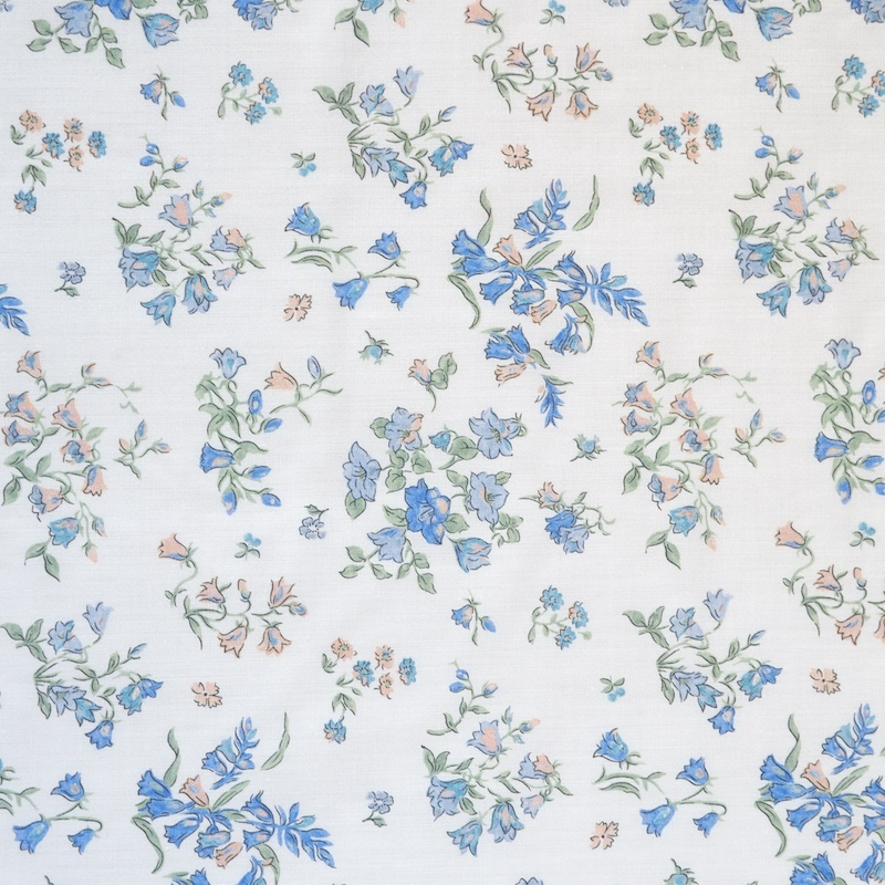 Brimming with nostalgia, Bluebell Fields captures the essence of Liberty’s quintessential style. Derived from a 1930s floral scarf border, the design has been meticulously redrawn to preserve the delicate textures of the original. Light and airy, it showcases scattered posies and charming bluebell sprigs, as if dancing in a gentle spring breeze.