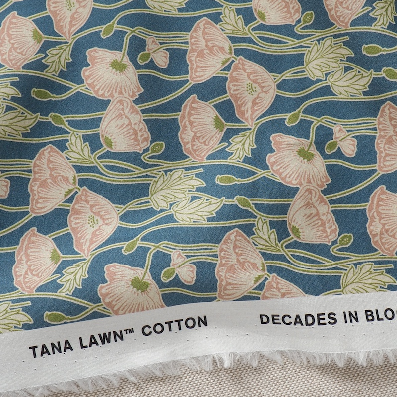 Erito Poppy originated from a small fabric fragment unearthed in the Liberty archive, dating back to the 1890s. Reimagined and digitally redrawn in the Liberty studio, the design highlights bold Art Nouveau inspired poppies.