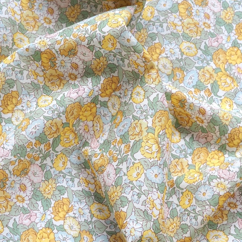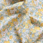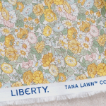 Leontyne Dream is a timeless and elegant floral pattern, originally created for Liberty in 1939 by the renowned Silver Studio. Rich in heritage and traditional in aesthetic, the design exemplifies Liberty’s signature style with its delicately outlined roses, marguerites, and convolvulus flowers. Shown here in a yellow and green colourway.