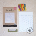 'Grandmothers' Flower Garden' from the America series is a popular pattern with the name coined in the 1930s. It is often made with a yellow centre, with six surrounding hexagons.