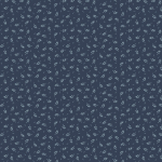 1800's reproduction collection by Sheryl Johnson. Blue ditsy flowers on a navy background.