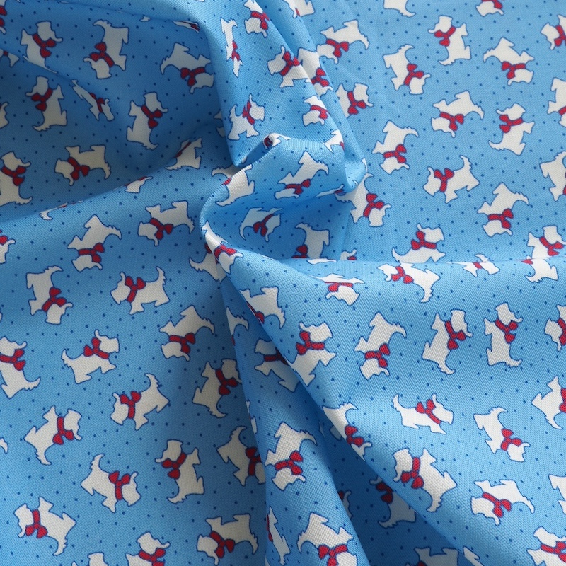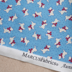 Charming 1930s reproduction print by Judie Rothermel part of the Aunt Grace Goes Scrappy collection for Marcus Fabrics. White scottie dogs on a blue background.