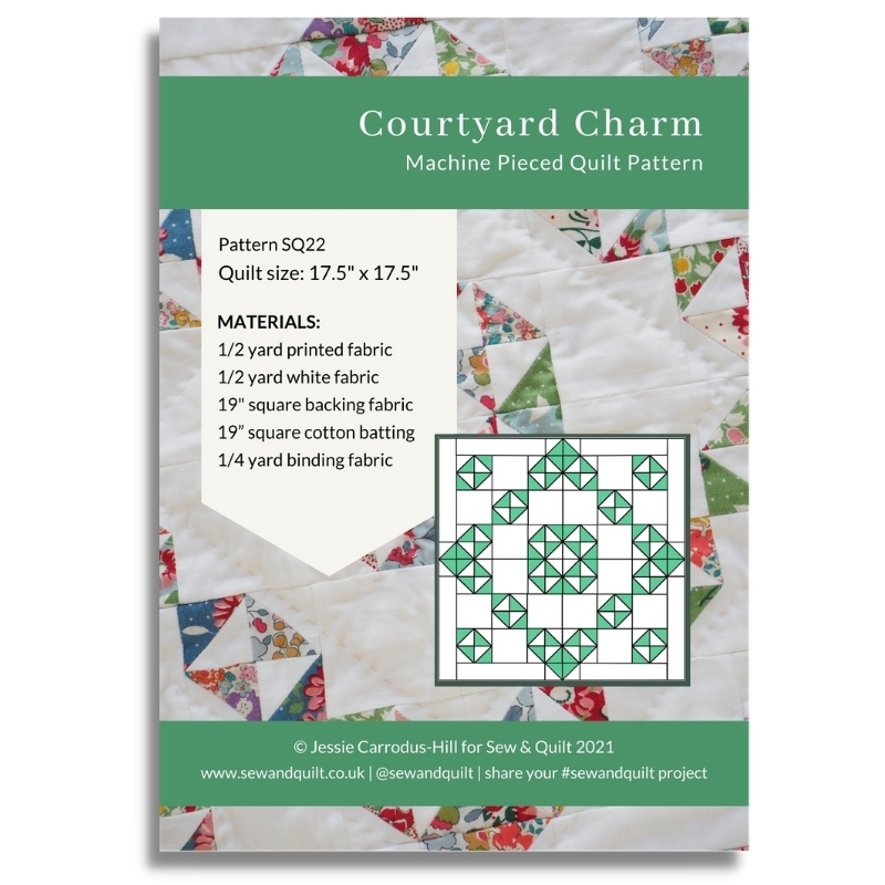 Courtyard Charm is a small-scale mini quilt pattern which reminds me of the fascinating Victorian maze gardens with its neat and symmetrical design. This is a fun little machine-pieced project to enjoy and make up in no time.