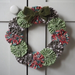 19" velvet ribbon, 8" ribbon/cord, 10" wire wreath form, Clover Jumbo Yo-Yo Maker and pattern with complete instructions and step-by-step photos.
