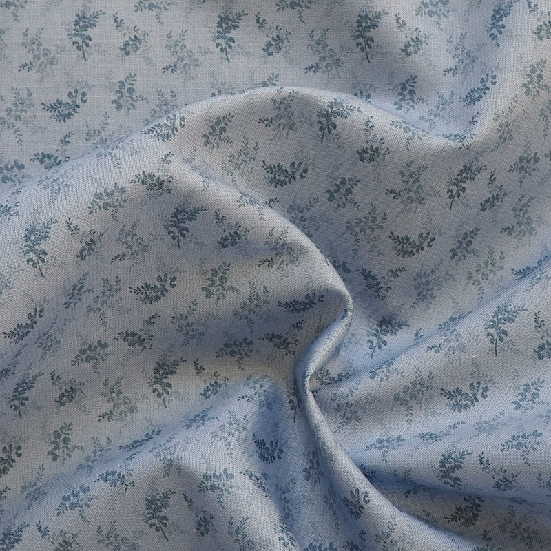 1800s reproduction floral featuring a delicate pattern of sprigs in varying shades of blue, creating a harmonious and elegant design.