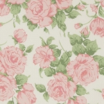 The Carline Rose print is an archival classic – it was originally painted in the 1990s, emulating the round, bold forms of vintage 1950s florals. Medium pale pink rose blooms on an off-white background.