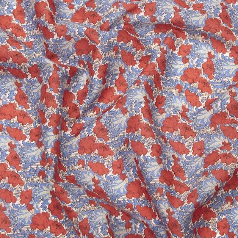 The Clementina print is an archival classic originally dating from the height of Liberty Fabrics’ iconic Art Nouveau period in the early 1900s – rescaled and recoloured here for the new collection. It features a meadow arrangement of elegant poppies, surrounded by curling leaves and grass.